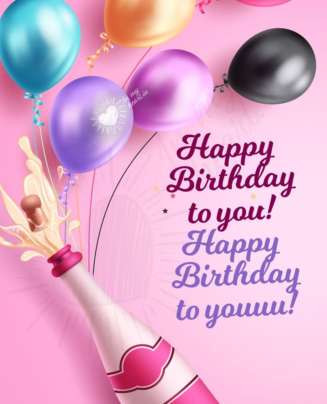 The image shows a "Happy Birthday" message with a bottle of champagne. The scene is festive and celebratory, perfect for a special birthday toast.